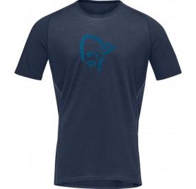 Léger et durable, le t-shirt à manches courtes Fjørå Wool T-Shirt Indigo Night/Mykonos Blue pour homme de la marque Norrona a été spécialement conçu pour la pratique du VTT.